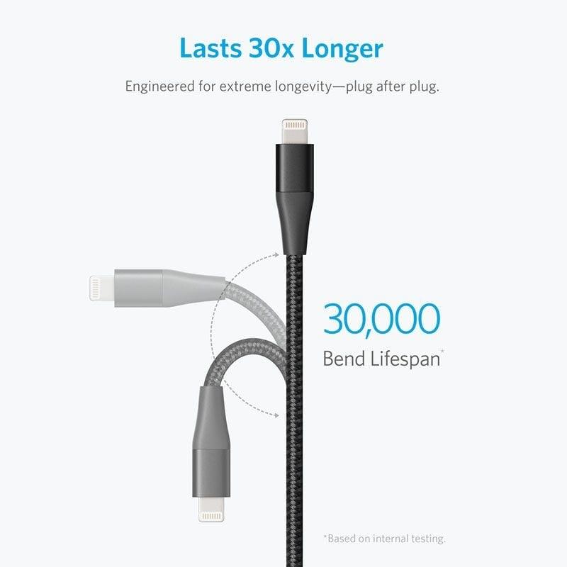 انكر سلك شاحن باورلاين بلس الاصدار الثاني من USB الى لايتنينغ بطول 1.8م - اسود-A8453H13