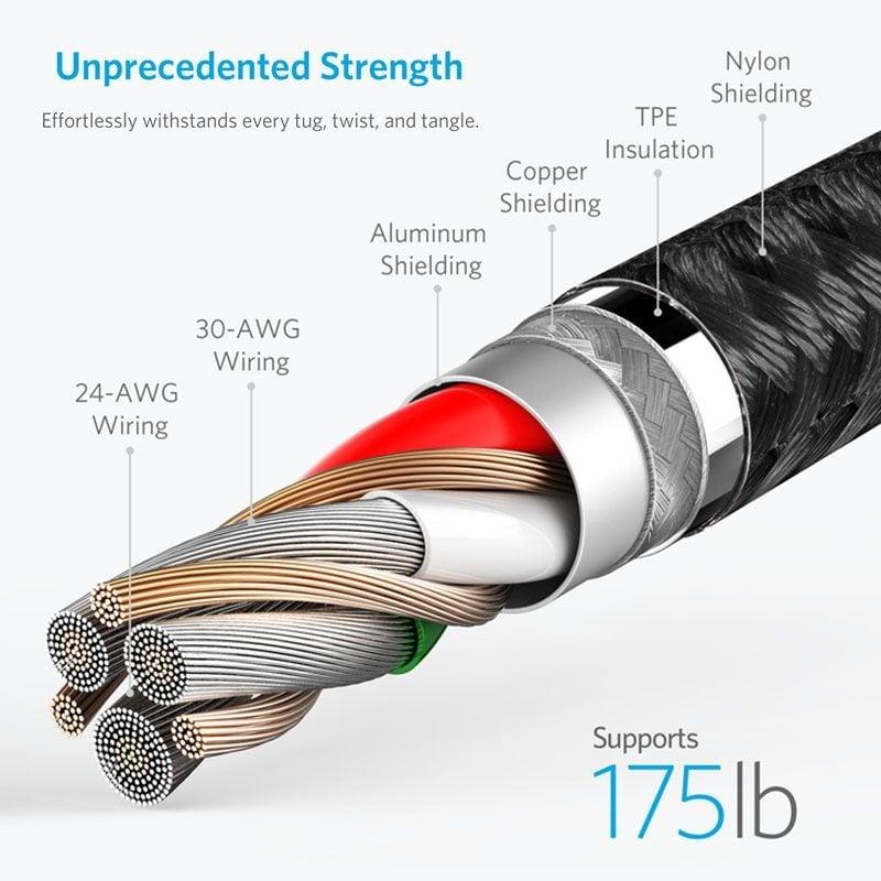 طاقة ثابتة: تدوم 30 مرة أكثر من الكابلات العادية - ثبت في بيئة معملية أنها تتحمل 30000 انحناء.