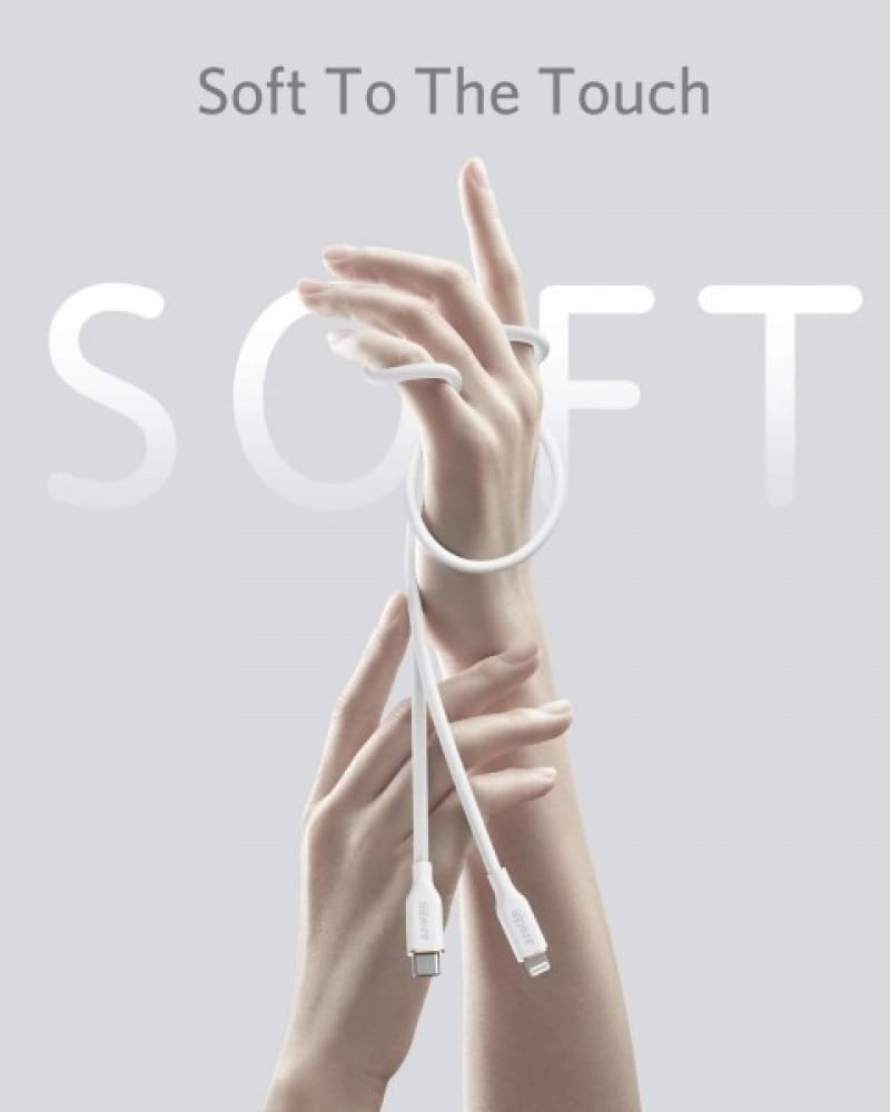 انكر سلك شحن سريع تايب سي الى لايتنينغ 1.8متر ابيض - PowerLine III Flow