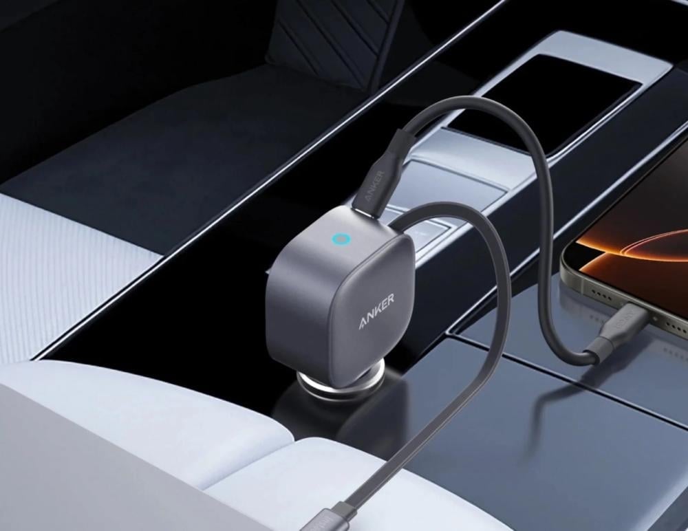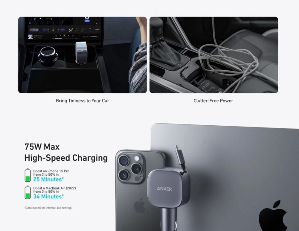 شاحن سيارة أنكر نانو بقوة 75 واط مع كابل USB-C قابل للسحب
