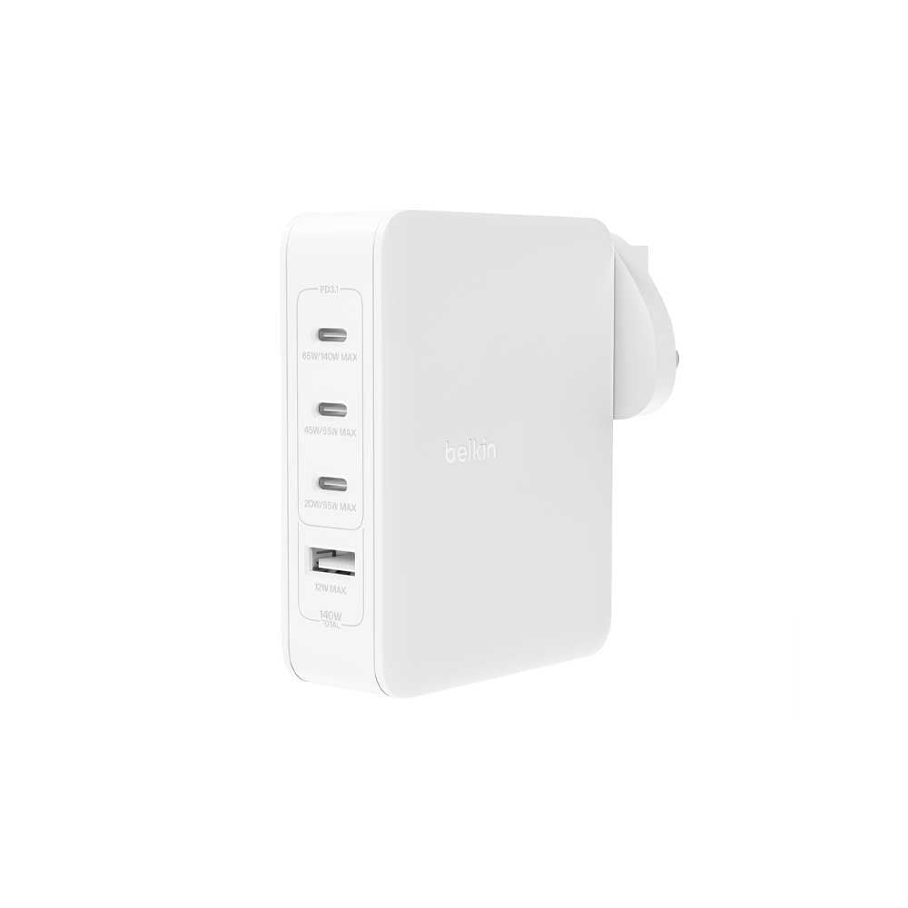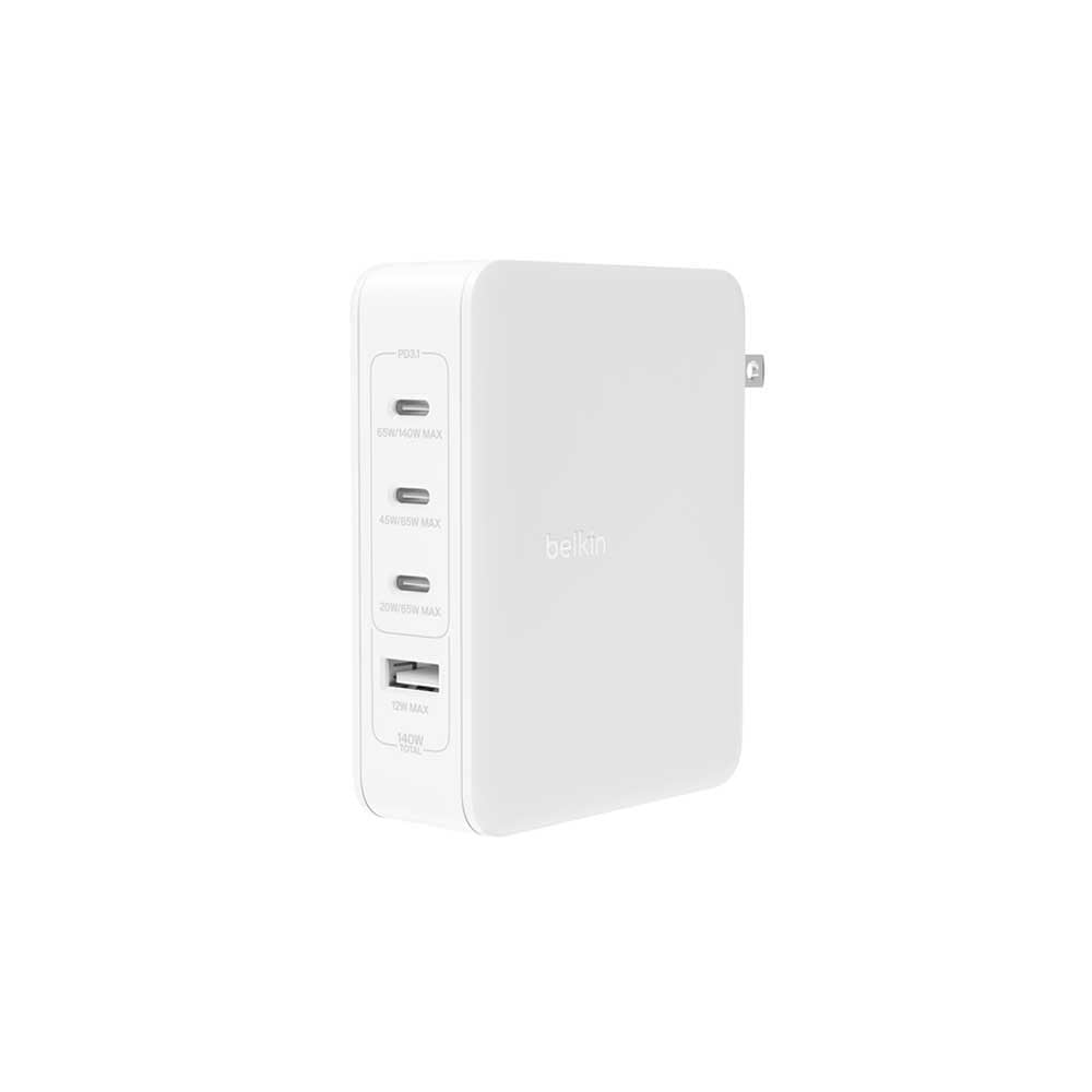 شاحن جداري بيلكن بوست تشارج بقوة 140 واط 3 منافذ USB-C ومنفذ USB-A - ابيض