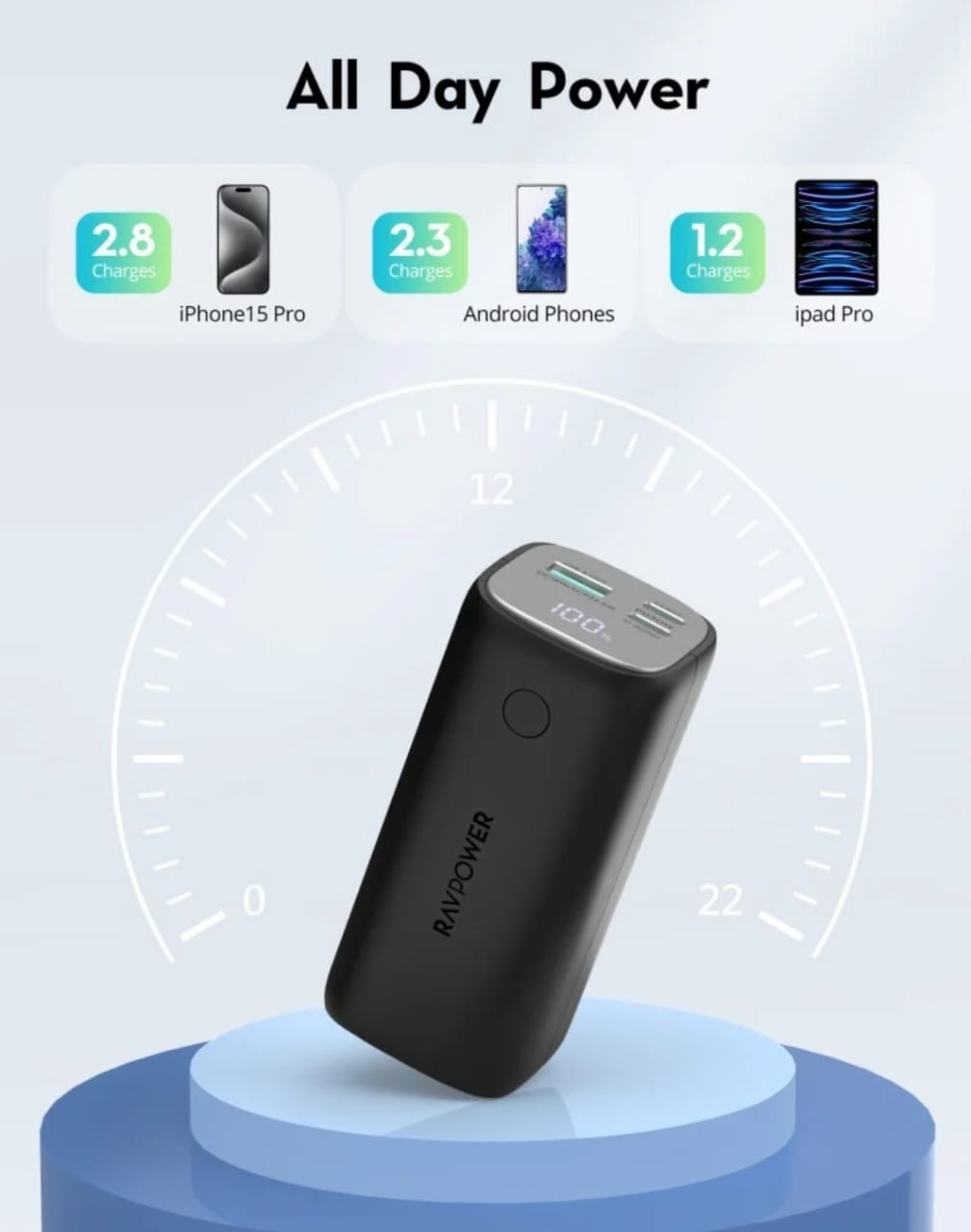 تم تجهيز هذه البطارية المتنقلة بمنفذين تايب سي ومنفذ USB-A، مما يتيح لك شحن ثلاث أجهزة في وقت واحد. يمكنك استخدام المنافذ تايب سي لشحن الأجهزة التي تدعم تقنية Power Delivery بقوة تصل إلى 30 واط، مثل اللابتوبات والأجهزة اللوحية والهواتف الذكية المتوافقة .أما منفذ USB-A، فيمكن استخدامها لشحن الهواتف الذكية وأجهزة اللوحية وسماعات الرأس والأجهزة الإلكترونية الأخرى.