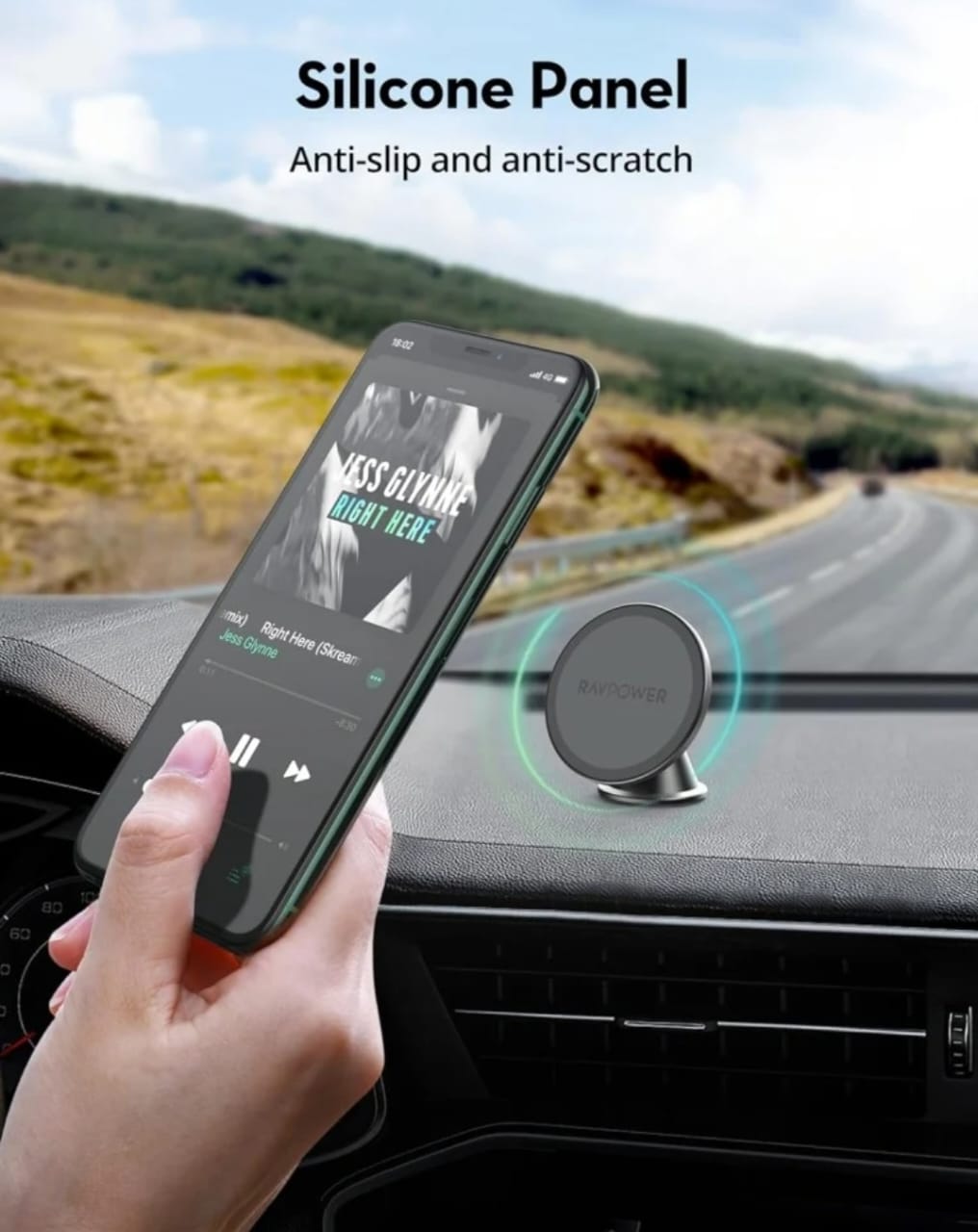 ستاند جوال راف باور المغناطيسي على السيارة هو حلاً عمليًا وآمنًا لتثبيت هاتفك الذكي أثناء القيادة. يأتي بتصميم مغناطيسي قوي يتيح لك إلصاق الهاتف بسهولة وثبات على سطح الستاند.
