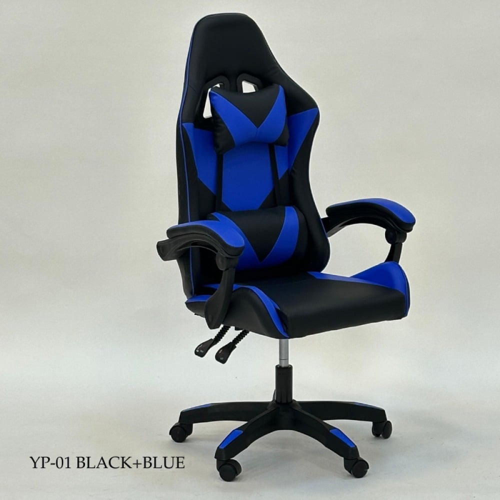 كرسي العاب جلد متحرك - لون اسود ازرق