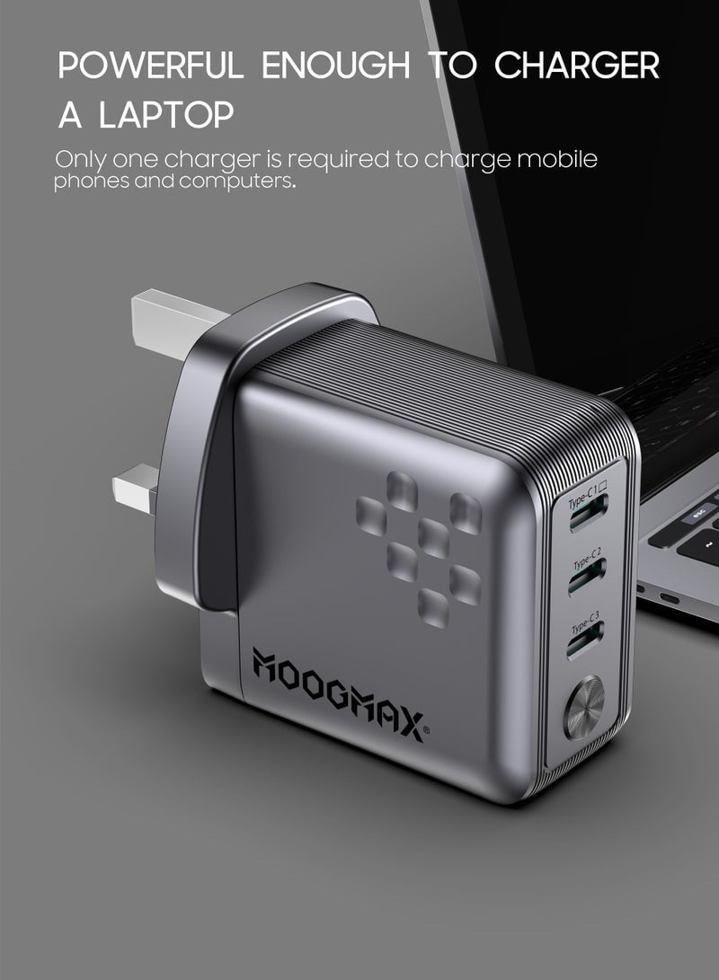 موج ماكس شاحن جداري ب 3 منافذ تايب سي بقوة 100 واط بتقنية GaN