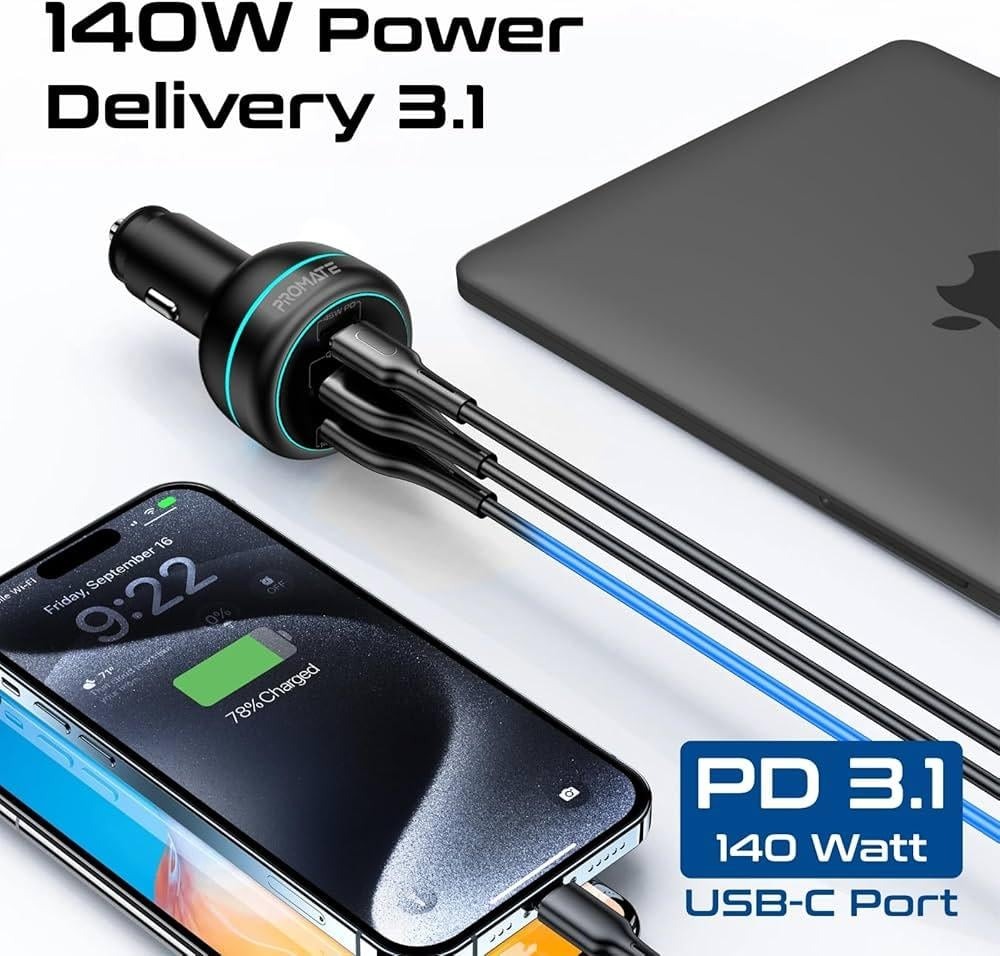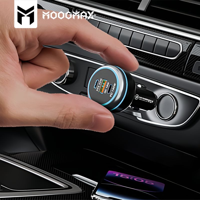 موج ماكس شاحن سيارة 230 واط بمنفذين PD ومنفذ USB-A - اسود MX1