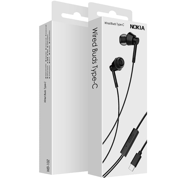 نوكيا سماعة اذن سلكية بمنفذ تايب سي مع ميكرفون مدمج - اسود