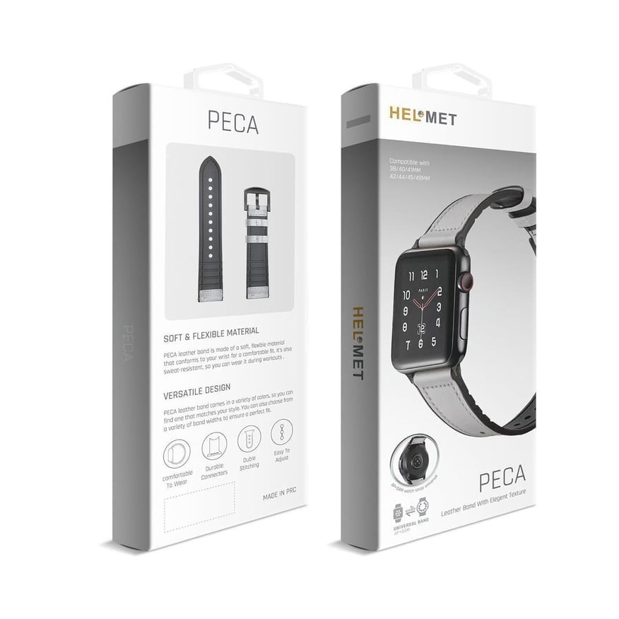 سوار ساعة Helmet Peca الرائع مصنوع من مطاط عالي الجودة بملمس يشبه الجلد الطبيعي. ما يميّزه هو توافقه مع جميع مقاسات ساعات آبل — من 38 مم وحتى 49 مم — مما يجعله خيارًا مثاليًا للجميع.