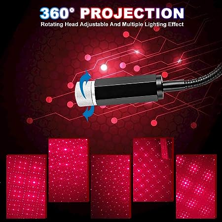 وصلة عرض بتصميم مرن وقابلة للتعديل مزودة بمنفذ USB تصدر أضواء على شكل نجوم بإسقاط ليزري تستخدم للزينة الليلية داخل السيارة والسقف وغير ذلك.
