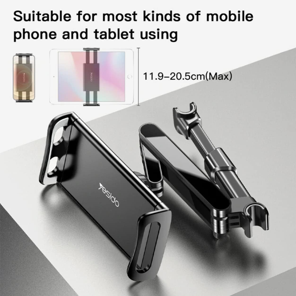 • استخدام حامل يسيدو C117 بأمان على مسند الرأس الخلفي للمقعد للهواتف الذكية والتابلت والباد