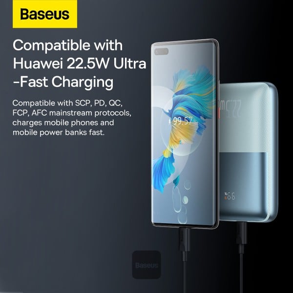 ما يميز أحدث باور بانك بيسوس 20000 هو تعدد خيارات الشحن، مع منفذين USB ومنفذ USB-C، أصبح من السهل شحن هاتفك وسماعتك وساعة اليد الذكية في نفس الوقت، دون أي تنازلات في السرعة أو الأداء، هذا ما يجعل باور بانك شحن سريع مثل Baseus خيارًا مثاليًا للاستخدام اليومي أو السفر.