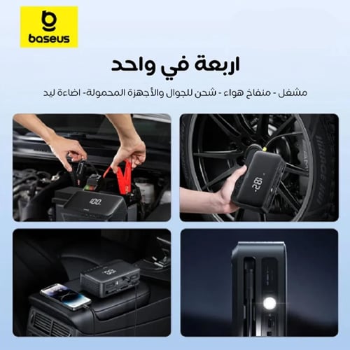 إذا كنت تبحث عن حل شامل وعملي لمشاكل بطارية السيارة وإطاراتها، فإن شاحن سيارة بيسوس 4 في 1 هو الخيار الأمثل، فهو يجمع بين تقنيات متطورة وأداء قوي ليمنحك راحة البال أثناء القيادة.