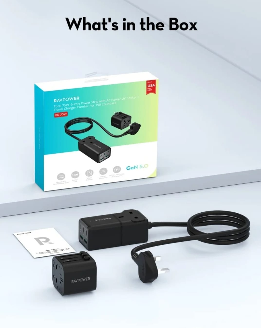 ودّع فوضى الشواحن المتعددة وتمتع بأداء استثنائي مع أفضل منصة شحن متعددة المنافذ من راف باور، تصميم أنيق وعملي يجمع بين 3 منافذ تايب سي، 2 منفذ USB-A، وفيش سفر عالمي يجعلك مستعدًا لأي موقف، سواء كنت في المنزل أو في رحلة عمل، مع قدرة شحن تصل إلى 75 واط وتوزيع ذكي للطاقة، تضمن لك منصة شحن جوالات راف باور سرعة وأمان في وقت واحد.