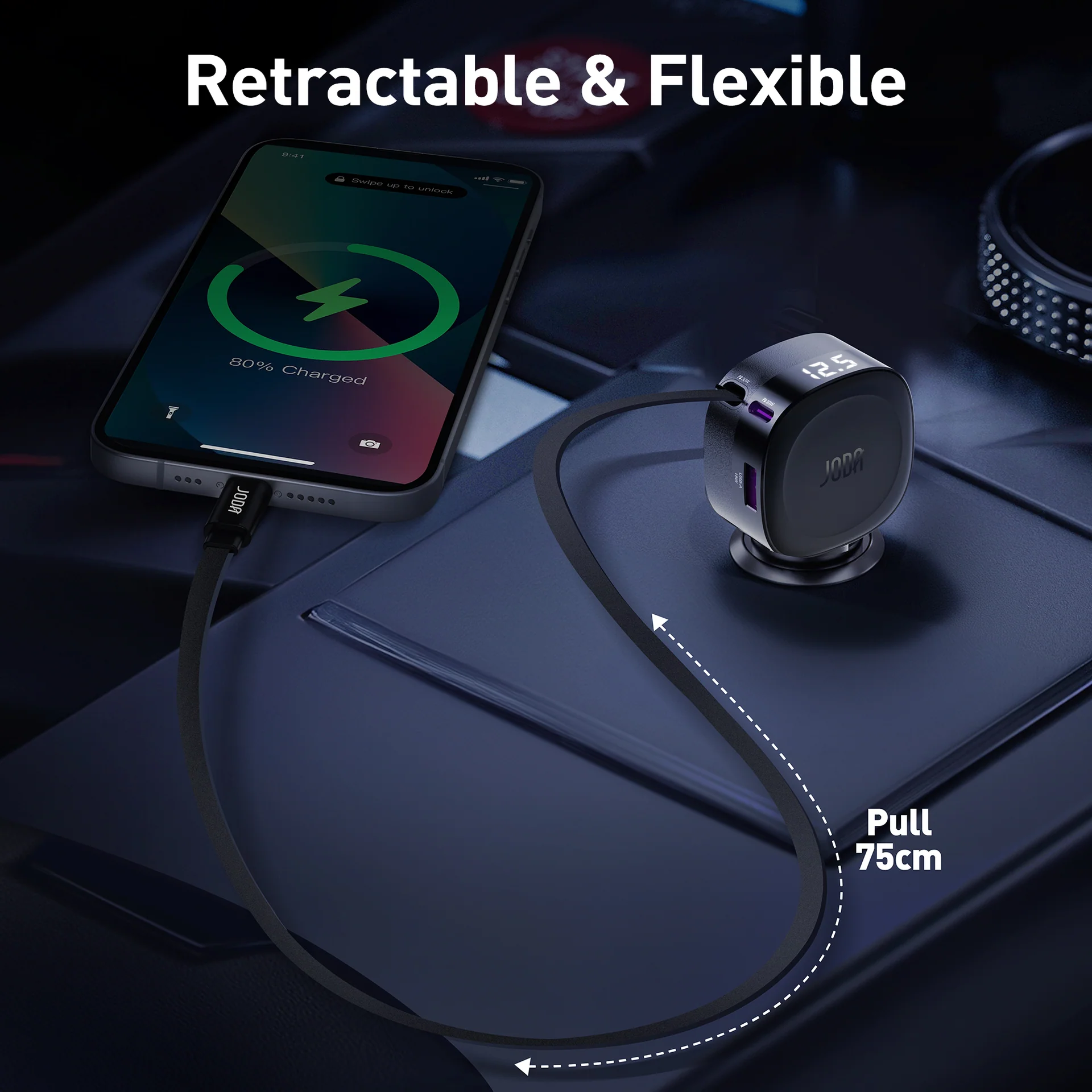لا تدع بطارية هاتفك تنفد أثناء القيادة! احصل الآن على جودا أفضل شاحن سريع للسيارة بقدرة 60 واط وكيبل مدمج قابل للسحب لاستخدام سهل ومنظم وبدون زحمة أسلاك. اطلبه اليوم من الدهماني للاتصالات قبل نفاد الكمية!