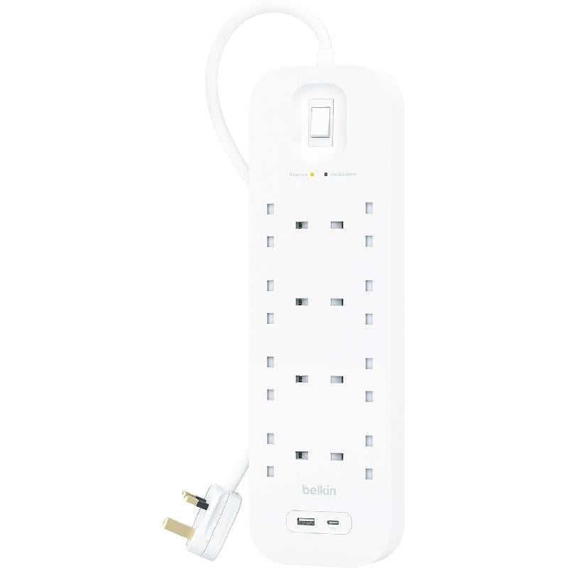 Belkin 8-port power outlet with USB-A port and Type-C PD port, 18 watts - white