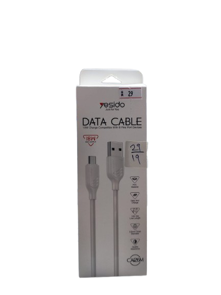 USB to Micro Charging Cable 18 watts plastic materials Charging and data transfer Length 1 meter white color Model CA126M Yesido brand
